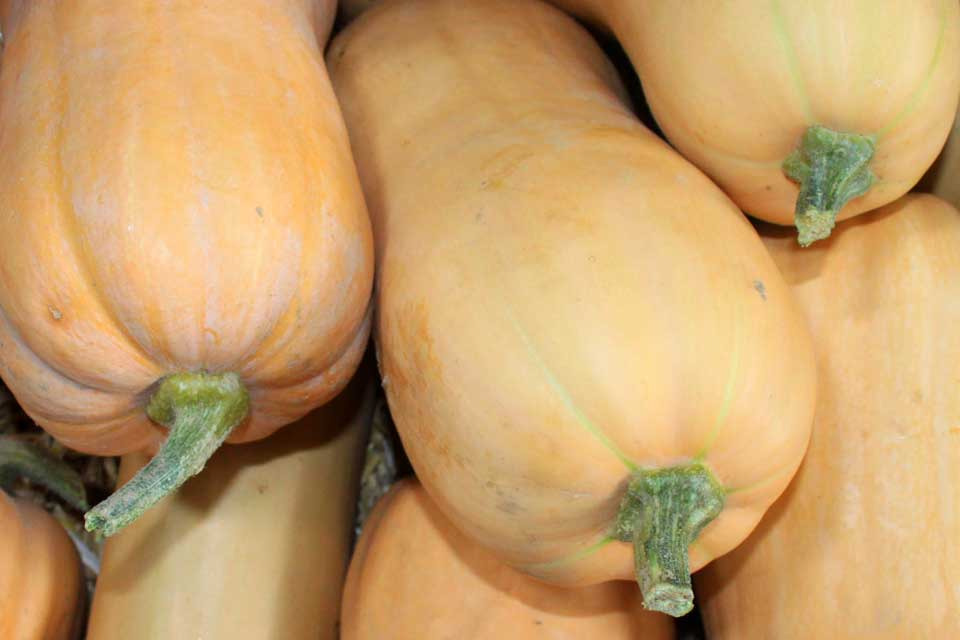 Beiger Stangenkürbis mit einem Gewicht von ca. 1-3 kg. Das leicht süßliche, feste, nussige Fruchtfleisch ist ideal geeignet zum Backen, im Vergleich zu anderen Sorten jedoch eher blass. Durch seine glatte Schale leicht zum Schälen. Sehr gut haltbar.