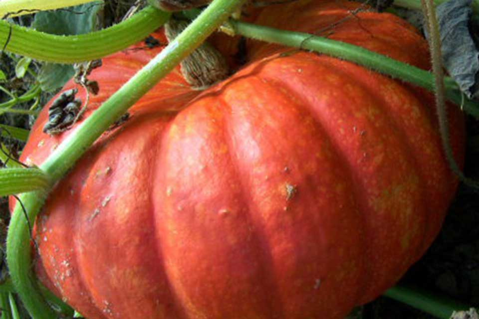 Sehr dekorative, knallrote Früchte mit einem Gewicht von ca. 2-10 kg. Das eher weiche Fruchtfleisch ist gut für Kürbisgemüse, Gulasch, Suppe (ideal mit Hokkaido binden) und Marmeladen geeignet.